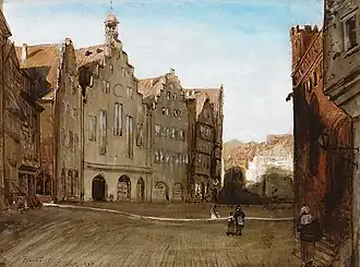 In 1879, he was named Director of the Kunsthochschule Kassel; a position he would hold until 1911. During his tenure, he was especially committed to the training of drawing teachers. Among his notable students were Heinrich Otto, Wilhelm Schmidthild and Heinrich Kiel. He continued to paint portraits, but also created murals for public buildings, all of which were destroyed during World War II. In addition, he travelled widely throughout Western Europe, painting urban scenes.