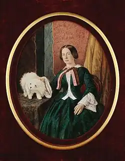 ![]() Miniature portrait of Louisa Holthuysen with her Maltese lion dog, c. 1840-1860 | |