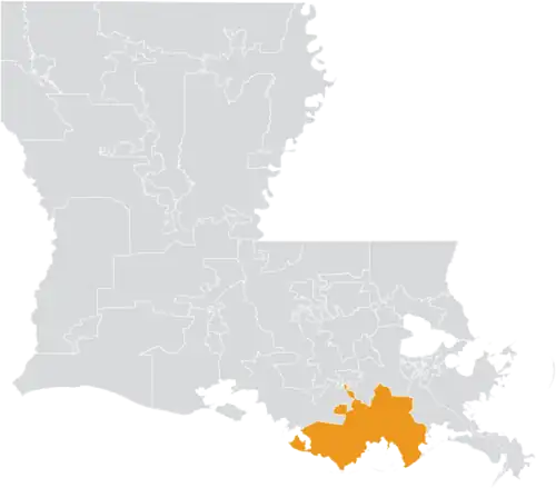 The district overlaps with Louisiana's 1st and 6th congressional districts, and with the 51st, 52nd, 53rd, 54th, and 55th districts of the Louisiana House of Representatives.[4]