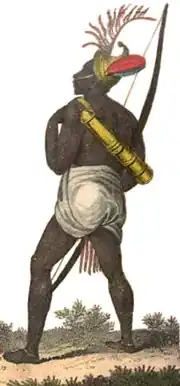 Many French colonists both admired and feared the Indigenous peoples' military power. At the same time, some French governors looked down on their culture and sought to keep a clear divide between the white settlers and Indians.[26] In 1735, interracial marriages were prohibited in Louisiana without the authorities' approval. However, by the 1750s in New France, the Native Americans came under the myth of the Noble Savage, holding that Indians were spiritually pure and played an important role in the New World's natural purity. Indian women were consistently considered to be good wives to foster trade and help create offspring. Their intermarriage created a large métis (mixed French Indian) population.[27]