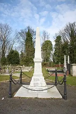 The cemetery has a granite obelisk dedicated to victims of the Louth Flood of 1920 when a severe flash flood hit Louth on 29 May 1920, resulting in 23 fatalities in 20 minutes. It has been described as one of the most significant flood disasters in Britain and Ireland during the 20th century.[13]