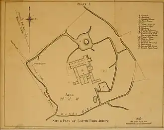 The abbey site was initially granted to Thomas Burgh, 1st Baron Burgh, for his lifetime, but was transferred to Charles Brandon, 1st Duke of Suffolk, two years later, in gratitude, by Henry VIII, for Suffolk's part in repressing the Lincolnshire Rising, which began at St. James Church in Louth in October 1536.[2] Elizabeth I gave the park to Sir Henry Stanley, and his wife Margaret, around 1570.[14]