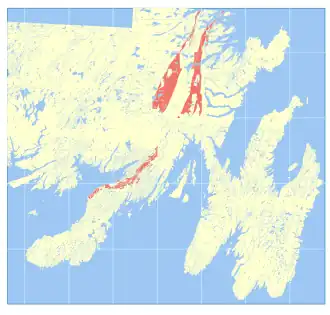 ![]() Occurrence of the Love Cove Group in southeastern Newfoundland | |