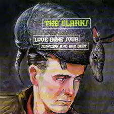 Love Gone Sour, Suspicion, and Bad Debt is the third album by the Pittsburgh, Pennsylvania, band the Clarks.[4][1] The first single, "Cigarette", makes reference to Fayette County, the rural county located 35 miles south of Pittsburgh from which lead singer Scott Blasey hails. "Treehouse" and "Madeline" were local radio hits.[5]