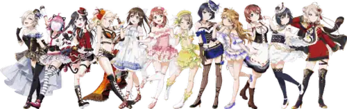 In October 2017, Aqours from Love Live! Sunshine!! were announced to join the arcade game.[39] They first appeared for a limited time from December 6, 2017, until January 8, 2018, as a preliminary trial as part of the game's 1st anniversary campaign.[40]