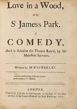 Love in a Wood; Or, St James's Park is a 1671 comedy play by the English writer William Wycherley. His debut play, it was first staged at the Theatre Royal, Drury Lane by the King's Company.