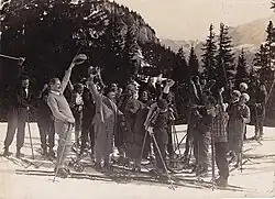 Love on Skis (German: Amor auf Ski) is a 1928 German silent comedy film directed by Rolf Randolf and starring Harry Liedtke, Rita Roberts and Georg Henrich.[1] It was shot at the Bavaria Studios in Munich and on location in the Alps. The film's sets were designed by the art director Ludwig Reiber.
