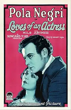 Loves of an Actress is a lost[1][2] 1928 American synchronized sound romantic drama film directed by Rowland V. Lee and starring Pola Negri. While the film has no audible dialog, it was released with a synchronized musical score with sound effects using the sound-on-film Western Electric Sound System process. The film was produced by Adolph Zukor and Jesse Lasky with the distribution through Paramount Pictures. [3][4]