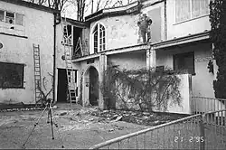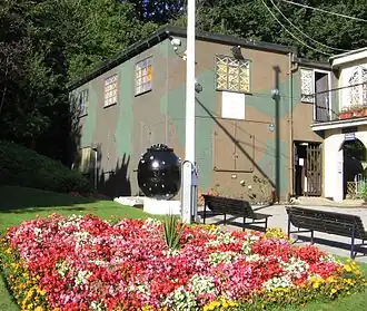The museum building was built by the Royal Navy as an extension to the house following the commandeering of the site as the headquarters and central depot for the Royal Naval Patrol Service in September 1939.[5][6] The base was originally named Pembroke X before being renamed HMS Europa until its decommissioning in 1946. The thatched two storey residence was demolished by the local authority in the 1960s, leaving the brick and concrete extensions which now form the Lowestoft War Memorial Museum, the Royal Naval Patrol Service Museum and a café.[7]