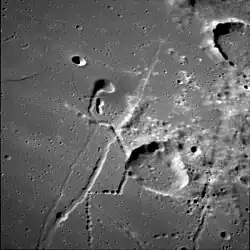 On the mare to the south of the patch of highland containing Lubbock is the rille system designated Rimae Goclenius. The parallel rays from the crater pair of Messier and Messier A reaches the rim of Lubbock H to the north.