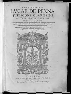 Lucas de Penna (Luca da Penne, Luca da Penna, Luca De Penna) (c. 1325 – c. 1390) was a fourteenth-century Neapolitan jurist and a judge of the Magna Curia at Naples.