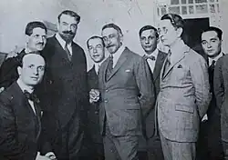 Luciano Folgore wrote poems using pen names from a young age.[2] Particularly appreciated by Filippo Marinetti he adhered to Futurism and some of his poems were published in the Anthology I poeti futuristi (1912). He collaborated with the historical magazines Lacerba and La voce.[3] He also contributed to satirical magazine Il Travoso in the 1930s.[4] In his futuristic collection of poetry Il canto dei motori (1912) he used a traditional, decadent language to describe the modern world of machines.[5]
