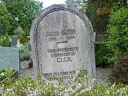 On the occasion of the 100th birthday, the Journal de Genève published a tribute to Odier which stressed her «extreme humility».[31] Odier is buried in Cologny – one of the most affluent municipalities in the Canton of Geneva – where also other former ICRC colleagues like Gustave Ador and Gautier-van Berchem have their graves. Her gravestone bears a verse from 1 John 2:10: