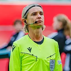 At confederation level she has officiated at the UEFA Women's Champions League, UEFA Women's Euro and FIFA Women's World Cup.[3] She also has refereed at the 2016 and 2020 Summer Olympics.[3][4]