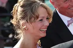In August 2006, speculation started about her intimate relationship with the chairman of the Civic Democratic Party, Mirek Topolánek.[2] She rejected them and called it a "great friendship".[3] In January 2007, information emerged that she was expecting a baby with Topolánek;[4] shortly afterwards, Topolánek confirmed the relationship.[5] The day after, Talmanová confirmed her pregnancy, but did not name the father.[6] The baby son was born on 24 July 2007.[7] Talmanová and Topolánek got married on 3 June 2010.[8]