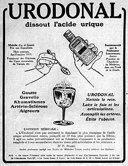 3. ^ Lefebvre, Thierry (2004). "L'Urodonal et ses publicités [Q251, L'Urodonal]". Revue d'Histoire de la Pharmacie. 92 (344): 680–684.