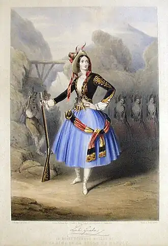 Grahn studied from a young age at the Royal Danish Theatre School in Copenhagen, Denmark under the tutelage of August Bournonville. She officially debuted in 1834 at the theater and took on the leading role of Astrid in Bournonville's Valdemar in 1835. Soon the relationship between Bournonville and Grahn began to sour as she yearned to dance with the famed Paris Opera Ballet. Grahn reportedly changed some of the steps in Valdemar to show off her footwork, prompting Bournonville to make a formal complaint to the theatre directors.[2] In 1836, she created the title role in Bournonville's La Sylphide.[2] She eventually received royal permission to leave; after her departure in 1836, she never returned to Denmark.[3]