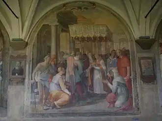 Belonging to the late-Mannerist period, he worked along with more famous figures as Alessandro Allori, Bernardino Poccetti or Santi di Tito on large projects, including the decoration of certain ceilings of the Uffizi and the Grand Cloister of Santa Maria Novella. In 1589, the duke Ferdinando I commissioned the decoration of the Map Room and the Stanzino delle Matematiche, following a design by Stefano Buonsignori.[1] There is a fresco by Buti on the Annunciation at the Basilica of Our Lady of Humility in Pistoia, as well as the cathedral at Fiesole.