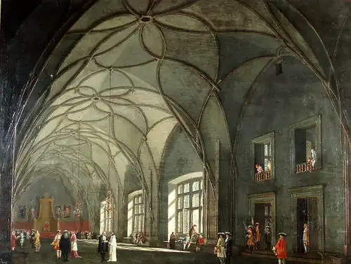 Most of works involve interior and exterior views of monumental buildings, although he also created some works with religious and historical themes. He would sometimes collaborate with Clemens, who helped him turn his works into copperplate engravings. Of especial note are his proposed designs for the completion of St. Vitus Cathedral at the Prague Castle complex.