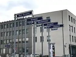 In 1885, Frankfurt's Jewish Market (Judenmarkt) was renamed Börneplatz in honor of his centennial, as was the synagogue built there in 1882.[22] (The site was destroyed and renamed Dominikanerplatz, a reference to the nearby Dominican Monastery, by the Nazis in 1935, but the name was restored in 1978. Since 1996 it has been a Holocaust memorial maintained by the Jewish Museum Frankfurt.)[23]