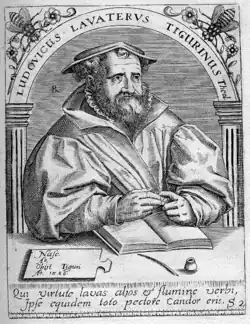 Ludwig Lavater (4 March 1527; Kyburg (castle) – 5 July 1586 in Zurich) was a Swiss Reformed theologian working in the circle of his father-in-law, Heinrich Bullinger. He served as Archdeacon at the Grossmünster in Zurich and briefly Antistes of the Zurich church as the successor of Rudolf Gwalther.