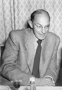 On his release in August 1935, he travelled to Spain where in July 1936 he joined the International Brigades in support of the Spanish Republican cause, becoming Chief of Staff for Lieutenant Colonel Hans Kahle in the XI International Brigade and the 35th Division.[8][9] He was in Madrid in November 1936 writing training booklets for the military command as the city became increasingly under threat. He was driven out of the city to Cuenca by Claud Cockburn, a British communist journalist, under orders from the government and their Russian advisors.[10] In November 1936 he became leader of the Thälmann Battalion of the XII International Brigade,[11] fighting in the Battle of Guadalajara in March 1937[12] and then in the Battle of Brunete.[13] In July 1937 he attended the Second International Writers' Congress, the purpose of which was to discuss the attitude of intellectuals to the war, held in Valencia, Barcelona and Madrid and attended by many writers including André Malraux, Ernest Hemingway, Stephen Spender and Pablo Neruda.[14] In August 1937 he was sent on a pro-Republican propaganda tour to the United States.[15] During his service in Spain he spent time with Ernest Hemingway. He wrote an account of his time in his work, Der spanische Krieg (1955), but was unable to name Hemingway, referring to him only as 'an American', because of the ideological condemnation of Hemingway's work in the GDR at the time.[16]