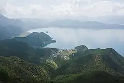 Lugu Lake on the border of Yunnan and Sichuan provinces, China. Taken from Lion Mountain