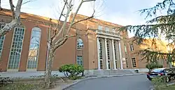 Manuel Sánchez Arcas and Lacasa won the 1927 competition by the Board for the Extension of Studies to build the Instituto Nacional de Física y Química (Institute of Physics and Chemistry) funded by the International Education Board of the Rockefeller Foundation. Known as the "Fundación Rockefeller building", it was designed in 1927 and built between 1928 and 1930. The brick structure was carefully thought out.[10] It followed the new principles of rationalist functionalism.[11] It fused these principles with traditional construction practices.[1] The windows of the central body have semicircular arches, while the others are lintelled. A giant portico on the main facade has great simplicity. It recalls classical designs but is free from historicism, and reflects the architecture of the great American universities.[10]