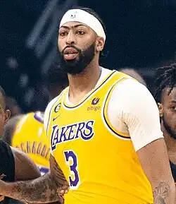 The Lakers won the 2020 NBA Finals in Davis's first year with the team, and as the main co-star alongside LeBron James, Davis was integral to their performance.[43] The Lakers had not achieved much playoff success since their 2020 title other than making the Conference Finals in the 2022–23 season. Davis also helped the Lakers win the inaugural NBA Cup during the 2023–24 season.[44] After joining the Lakers, Davis made the All-NBA First Team in 2020, the All-NBA Second Team in 2024, and the All-Defensive First Team in 2020 and 2024. He was an NBA All-Star in 2020, 2021, 2024, and 2025.[45] However, he was plagued by injuries during the 2020–21, 2021–22, and 2022–23 seasons.[46] In 2023, he signed a three-year, $186 million maximum contract extension that tied him to the Lakers through 2028, which was the largest extension in NBA history at the time by annual dollar value.[47]