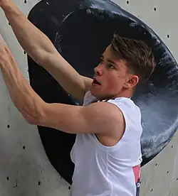 Luka Potočar is a Slovenian rock climber who specializes in competition climbing.[2][3] He participated at the 2021 IFSC Climbing World Championships, winning the silver medal in the lead event.[4][5]