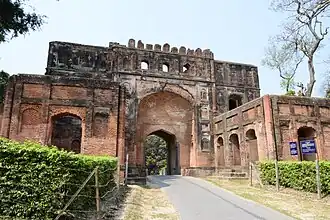 Lukochuri Darwaza,[a] (Bengali: লুকোচুরি দরওয়াজা, lit. 'Hide and Seek Gate,') is a historic Mughal-era gateway in Gaur, Malda, West Bengal, India. It is situated on north of Gumti Gate and southeast of the Qadam Rasul Mosque. Built around the 17th century, likely under Mughal prince Shah Shuja. This three-storeyed tripartite gate has a central four-pointed arch flanked on either side by arched entrances two storeys high, features brick architecture with grand arches and served as an entrance to the Gaur citadel.[1] Part of the ancient city’s ruins, the monument is maintained by the Archaeological Survey of India.[2]