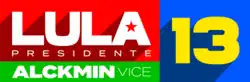 The Workers' Party national committee, on 13 April 2022, approved the nomination of former governor of São Paulo Geraldo Alckmin (PSB) for Vice President.[5] The ticket was officialized on 7 May, in a coalition formed by the Brazil of Hope Federation (formed by Workers' Party, Communist Party of Brazil and Green Party), Brazilian Socialist Party, Solidarity and PSOL REDE Federation.[1][2] With the withdrawal of André Janones on 4 August, the ticket received official support of Avante and Agir.[6]
