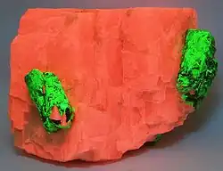 A modern parallel to ancient miners seeking luminous gems at nighttime is mineworkers using portable shortwave ultraviolet lamps to locate ores that respond with color-specific fluorescence. For instance, under short-wave UV light, scheelite, a tungsten ore, fluoresces a bright sky-blue, and willemite, a minor ore of zinc, fluoresces green (Ball 1938: 501).