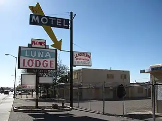 The Luna Lodge is a historic motel on Central Avenue (former U.S. Route 66) in Albuquerque, New Mexico, which is notable as one of the best-preserved Route 66 era motels remaining in the city.[3] It was built in 1949 and was one of the easternmost Albuquerque motels, located about 6 miles (9.7 km) from the city center. The motel eventually closed and fell into disrepair, but was restored and converted to low-income housing in 2013.[4] The property was added to the New Mexico State Register of Cultural Properties and the National Register of Historic Places in 1998.[2]