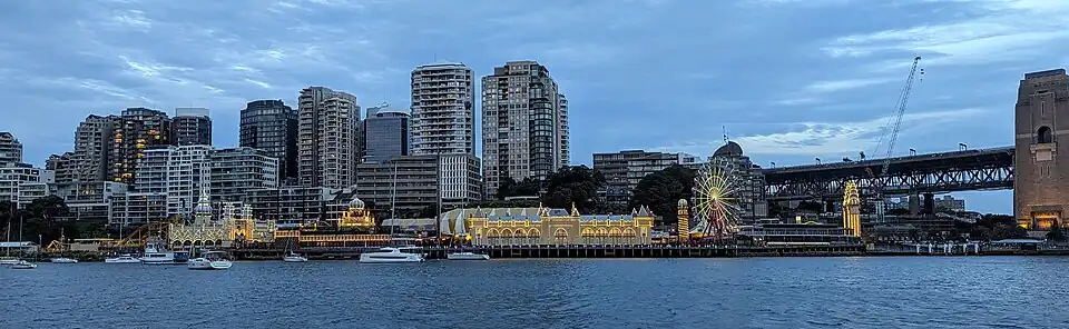 The park was constructed during 1935, approximately 600 metres (2,000 ft) from the northern approaches of the Sydney Harbour Bridge. It was an extremely popular attraction during World War II and the post-war period. The park suddenly closed in mid-1979 after the Ghost Train fire which killed six children and one adult. Most of the park was demolished and new rides installed, reopening in 1982. From April to August of that year, the park operated under the name Harbourside Amusement Park. The park was closed again in 1988 as an independent engineering inspection determined that several rides needed urgent repair. The owners failed to repair and reopen the park before a Government of New South Wales deadline, and ownership was passed to a new body.