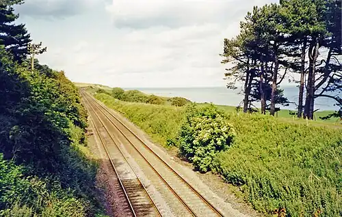 ![]() The site of the station, looking northeast towards Montrose, in 2002 | |||||