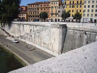 Together with the Harbour, a fountain was erected: it was transferred to Piazza Pietro d'Illiria during the building of the muraglioni (massive walls) of the Lungotevere. In its place, two drinking fountains were realized, about halfway the staircases going down to the river: they are idle since 1950.[3]