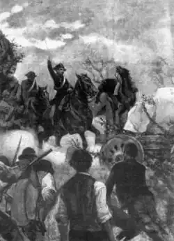 By the following morning the city of Carrara was surrounded by soldiers under the command of General Nicola Heusch. A state of siege had been proclaimed by the Crispi government on January 16, 1894.[9] Among those threatened with arrest were many quarry workers, who responded by declaring a general strike. Instead of going to work, they came down from the mountains and gathered around the military barracks where hundreds of prisoners had already been detained. Troops were then ordered to amass and, as soon as the crowd came near enough, they fired. Eleven deaths resulted, as well as numerous other casualties. (Other sources mention 8 people killed and 13 wounded).[10] Armed bands dispersed into the mountains pursued by troops.[9][11]