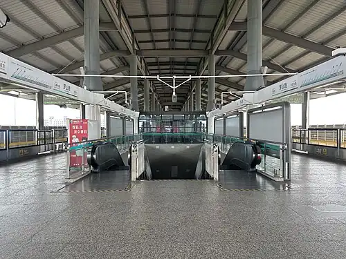 Luoshan Road (simplified Chinese: 罗山路; traditional Chinese: 羅山路; pinyin: Luóshān Lù) is a Shanghai Metro interchange station which serves both Line 11 and Line 16. Line 11 opened on 31 August 2013,[2] with the first section of Line 16 opening on 29 December 2013.[1] It was formerly Line 16's northern terminus before its extension towards Longyang Road. It was also Line 11's eastern terminus before the extension to Kangxin Highway opened on 19 December 2015.