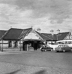 The station opened on 18 November 1841 by the Ulster Railway.[12] Following the merger of the Ulster Railway to the new company Great Northern Railway. The station was rebuilt in 1897 designed by William H. Mills to reflect the new Great Northern Railway's style.[13] After G.N.R.(I). was liquidated in 1958 ownership of the station fell on the newly formed Ulster Transport Authority, then temporarily became Ulster Transport Railways (U.T.R.) before being taken over by Northern Ireland Railways (N.I.R.) in 1968. It briefly known as "Craigavon East" for a time back in the 1970s. On 22 July 1972, the original Great Northern Railway station building was destroyed by a paramilitary bomb, and subsequently the current station building was erected.[13][14]