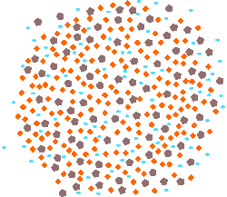 Schematic diagram showing elemental movement starting from planetesimal formation. Light blue particles represent volatile elements, which will not condense during early Earth formation. Dark brown and orange particles are both refractory elements which condense to form the solid Earth (indicated by the black circle). Dark brown particles represent siderophile elements that sink to the centre of Earth during core formation while the orange lithophile elements do not.