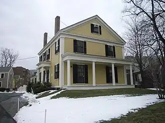 The 2+12-story wood-frame house was built in 1840 by Oliver Hastings. It retained a traditional entry centered on the long side of the house, while it was oriented with its gable to the street in the Greek Revival style. A two-story ell at the rear of the house is probably original, and the house was further extended with a single story addition on its east side.[2]