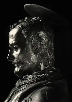 The cult of St. Luxorius spread also in the rest of Tuscany and in 1422 the Humiliati friars of Florence obtained to transfer the relics from Pisa to this city, where they were preserved in the church of Ognissanti. In 1427 these friars turned to Donatello to shape a bronze bust of the Saint to be used as a reliquary for the head of Saint Luxorius. The sculptor modeled a beautiful gilded bronze bust, about half a meter high, (now preserved in Pisa in the Museo Nazionale di San Matteo) that was kept by the Florentine friars until the suppression of the Order in 1571.