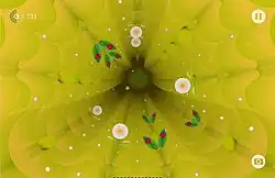 The developers attempted several iterations of the concept, discarding attempts to set the game in space, but settled on taking a playful, humorous approach focusing on flowers.[10] This tone was a departure from the darker, narrative tone of earlier works,[12] aiming to create a game that would provide people access to feelings of "joy and beauty".[8] Originally, the game was created with the gamepad as the intended interface, as Harvey and Samyn considered the "sterile feel of the glass screen didn't seem compatible with the sensuality" they hoped to evoke.[12] Development of the game was supported by the Flanders Audiovisual Fund.[1]