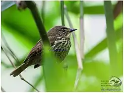 The Luzon striped babbler (Zosterornis striatus) is a species of bird in the family Zosteropidae. It is one of the four striped babblers along with the Negros striped babbler, Panay striped babbler and Palawan striped babbler. It is endemic to the Philippines, where it is only found in northern Luzon and in Bataan. Its natural habitat is tropical moist lowland forest. It is threatened by habitat loss.