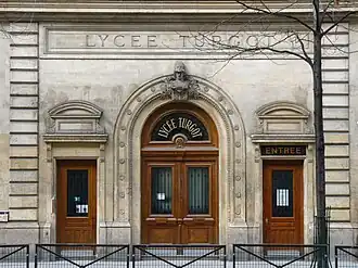 The lycée polyvalent de Turgot is a lycée located in the 3rd arrondissement of Paris. Its entrance is located at 69 rue de Turbigo. It runs classe préparatoire aux grandes écoles in the D1, D2, PC and ECT streams.