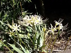 Lycoris is a genus of 13–20 species of flowering plants in the family Amaryllidaceae, subfamily Amaryllidoideae.[3] They are native to eastern and southern Asia in China, Japan, southern Korea, northern Vietnam, northern Laos, northern Thailand, northern Burma, Nepal, northern Pakistan, Afghanistan, and eastern Iran. They were imported into North Carolina and now grow wild. In English they are also called hurricane lilies or cluster amaryllis. The genus shares the English name spider lily with two other related genera.[4][5][6]