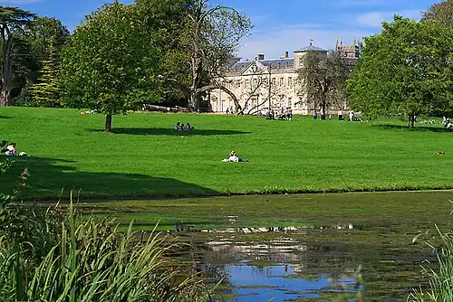 Formal gardens and a canal were created as part of changes made to the medieval house in the 17th century; Sir John St John also laid out a series of formal avenues.[4] However, many of the formal elements of the park had been removed by 1766.[1] Surviving features from the 18th century include a semi-underground listed ice house[5] and a walled garden,[6] with a bronze sundial at its centre.[7] Large parts of the park were sold off in the 1920s and 1930s.[4]