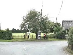 ![]() Signpost and telephone box in the centre of Lyneal | |