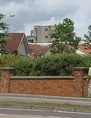 ![]() The distinctive concrete tower of Lynebank Hospital, just visible over the rooftops | |